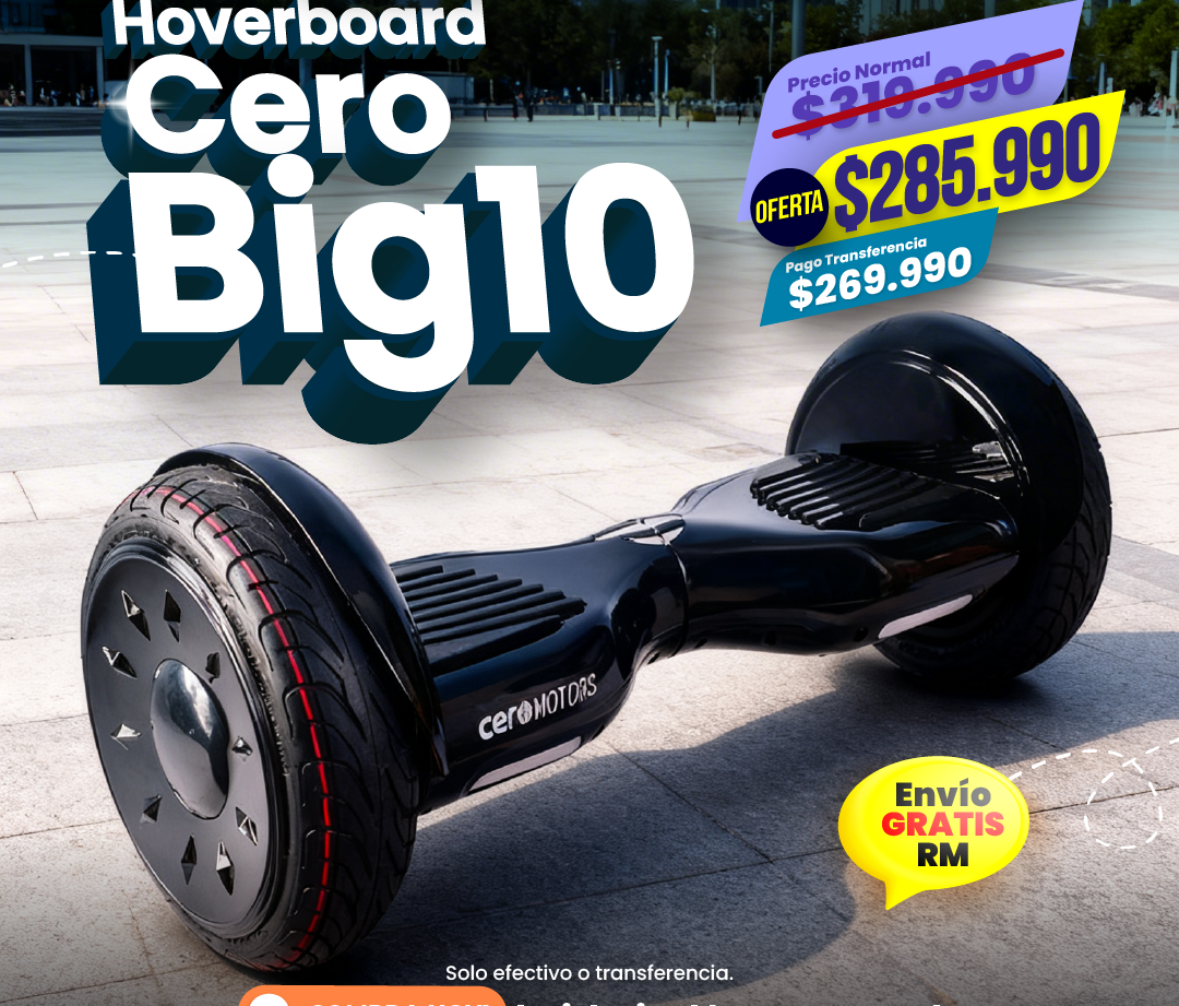 Eleva tu experiencia de movilidad con el Hoverboard Big10 de Cero Motors. Diseñado para ofrecer comodidad y estabilidad incomparables, este hoverboard cuenta con neumáticos inflables de 10 pulgadas que reducen las vibraciones del terreno, brindándote un viaje suave y placentero en cualquier superficie. Con una potencia de 700W, es capaz de llevar tanto a niños como a adultos con facilidad, garantizando un rendimiento confiable y seguro. Su batería LG de alta calidad proporciona una autonomía de 12-16km, mientras que las luces LED frontales aseguran una mayor visibilidad durante tus aventuras nocturnas. Con certificaciones CE-FCC-ROHS que garantizan su calidad y seguridad, y un bolso de transporte incluido para mayor comodidad, el Hoverboard Big10 es la elección perfecta para aquellos que buscan un medio de transporte divertido y práctico.